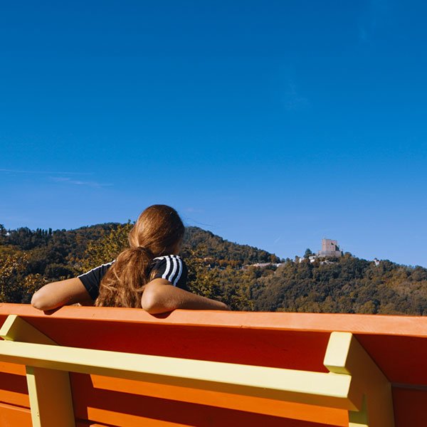 Uno dei più suggestivi è senz’altro il sentiero CAI 043A che ti conduce alla Big Bench #310 ai piedi del castagneto. Qui non puoi perdere l’occasione: arrampicati sulla grande panchina e con i piedi a penzoloni come bambini, lasciati rapire dallo spettacolare panorama sulla vallata.